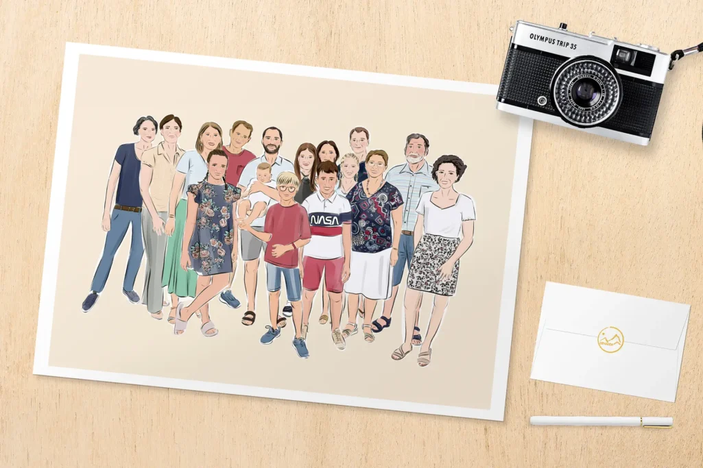 Offrir un dessin personnalisé famille nombreuse, c’est choisir un cadeau émouvant et rassembleur, qui traverse les générations.