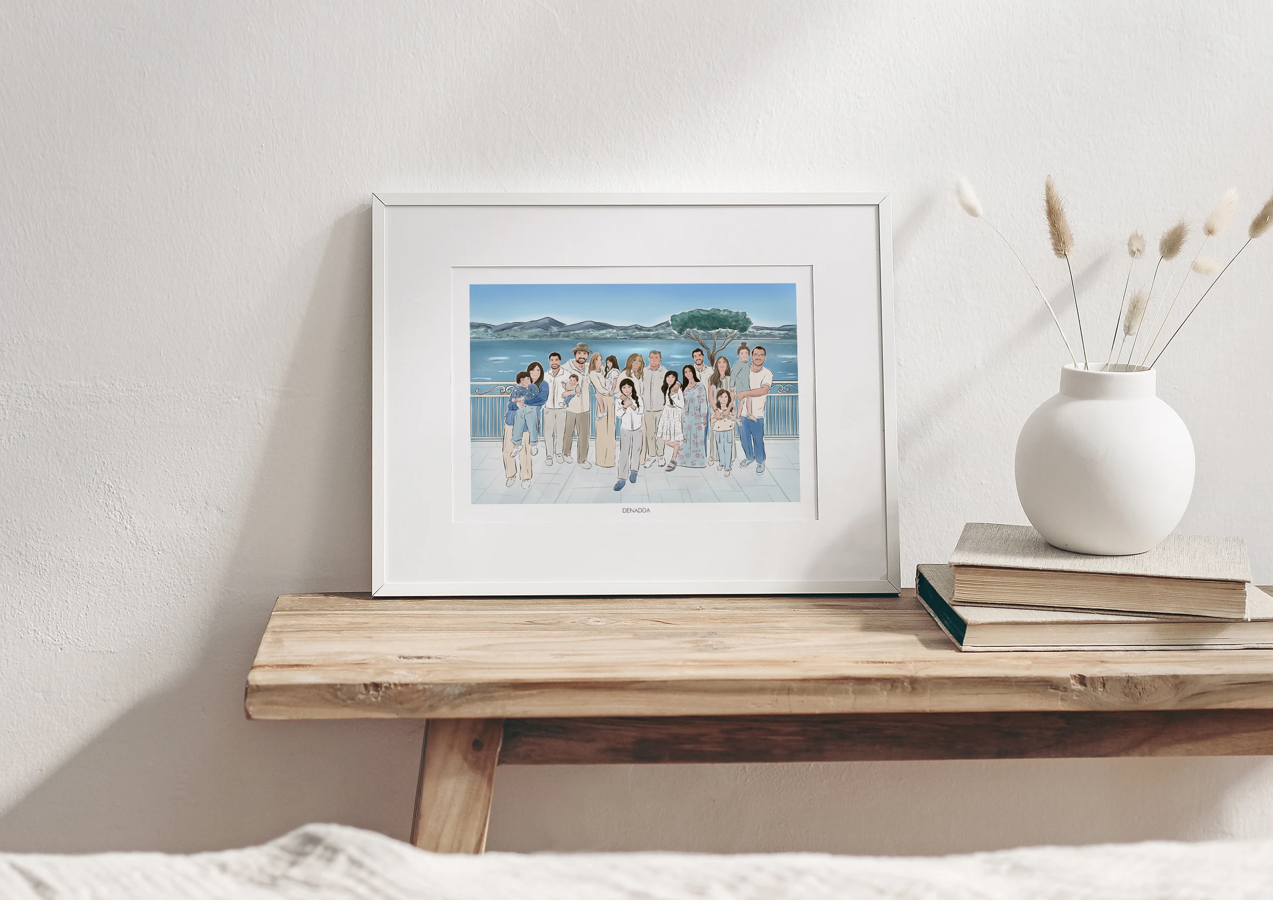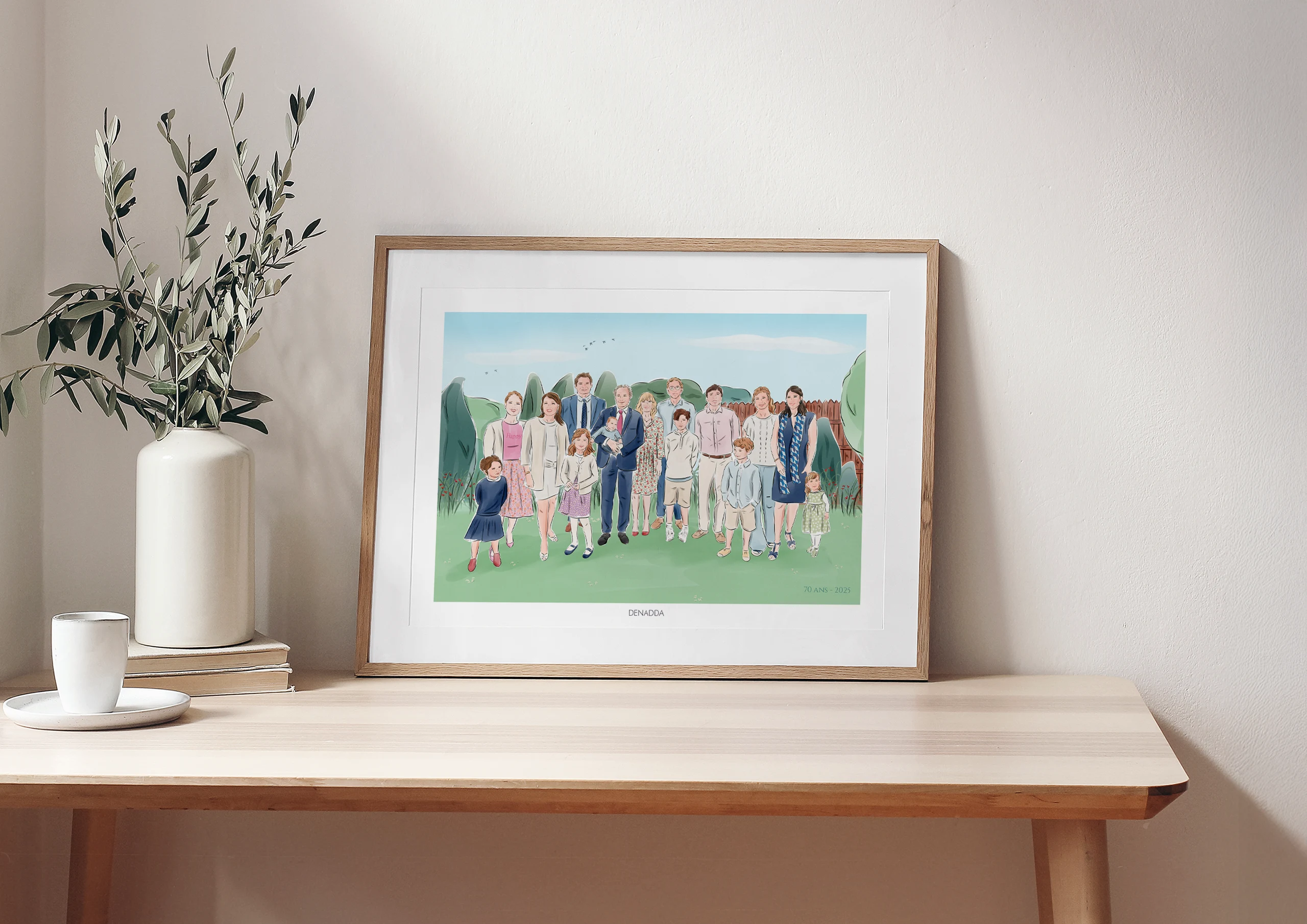 Parce que chaque grande famille a une énergie unique, nous transformons vos photos en dessins chaleureux et émouvants. Un visuel qui rassemble et trouve naturellement sa place au cœur de la maison.