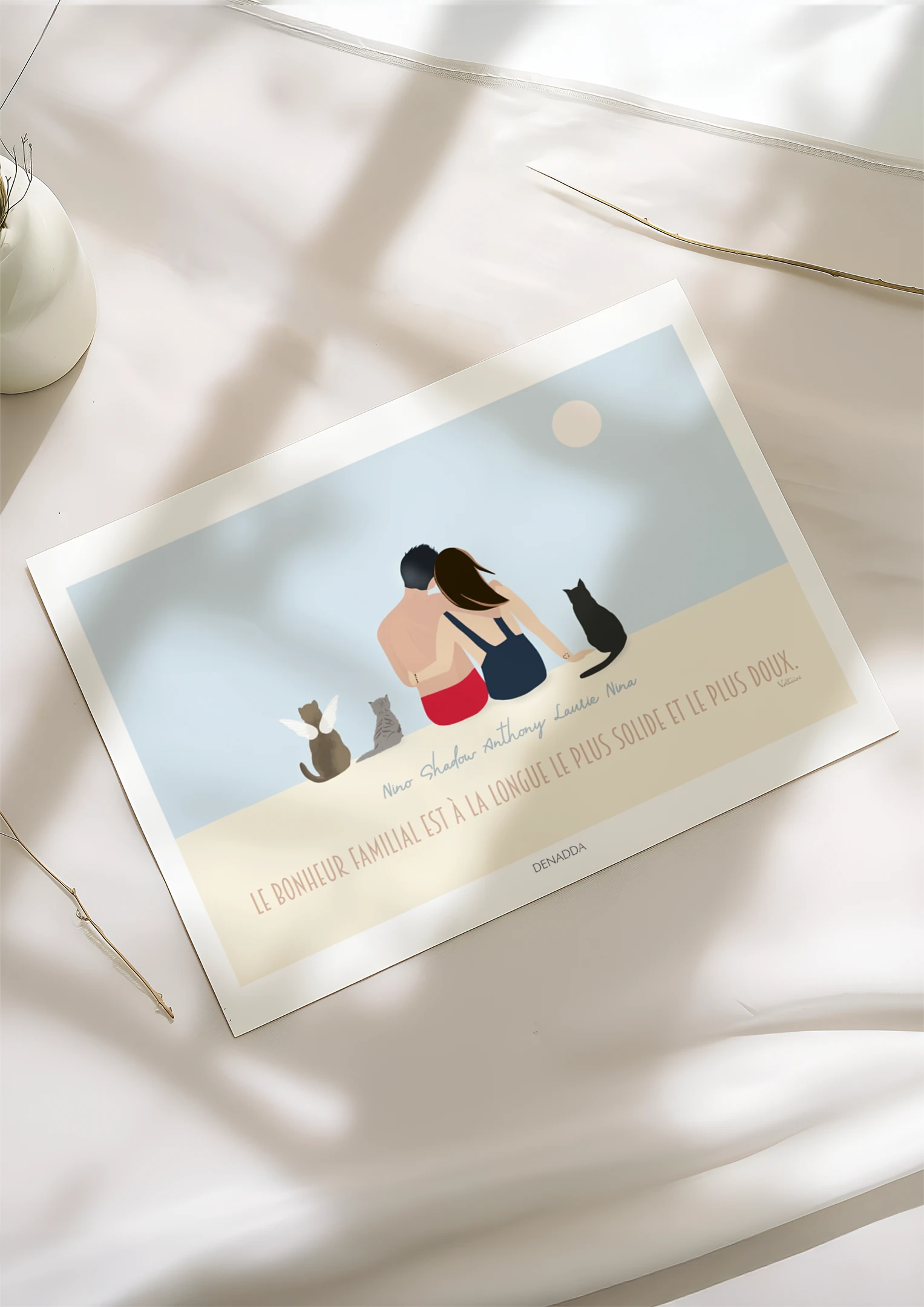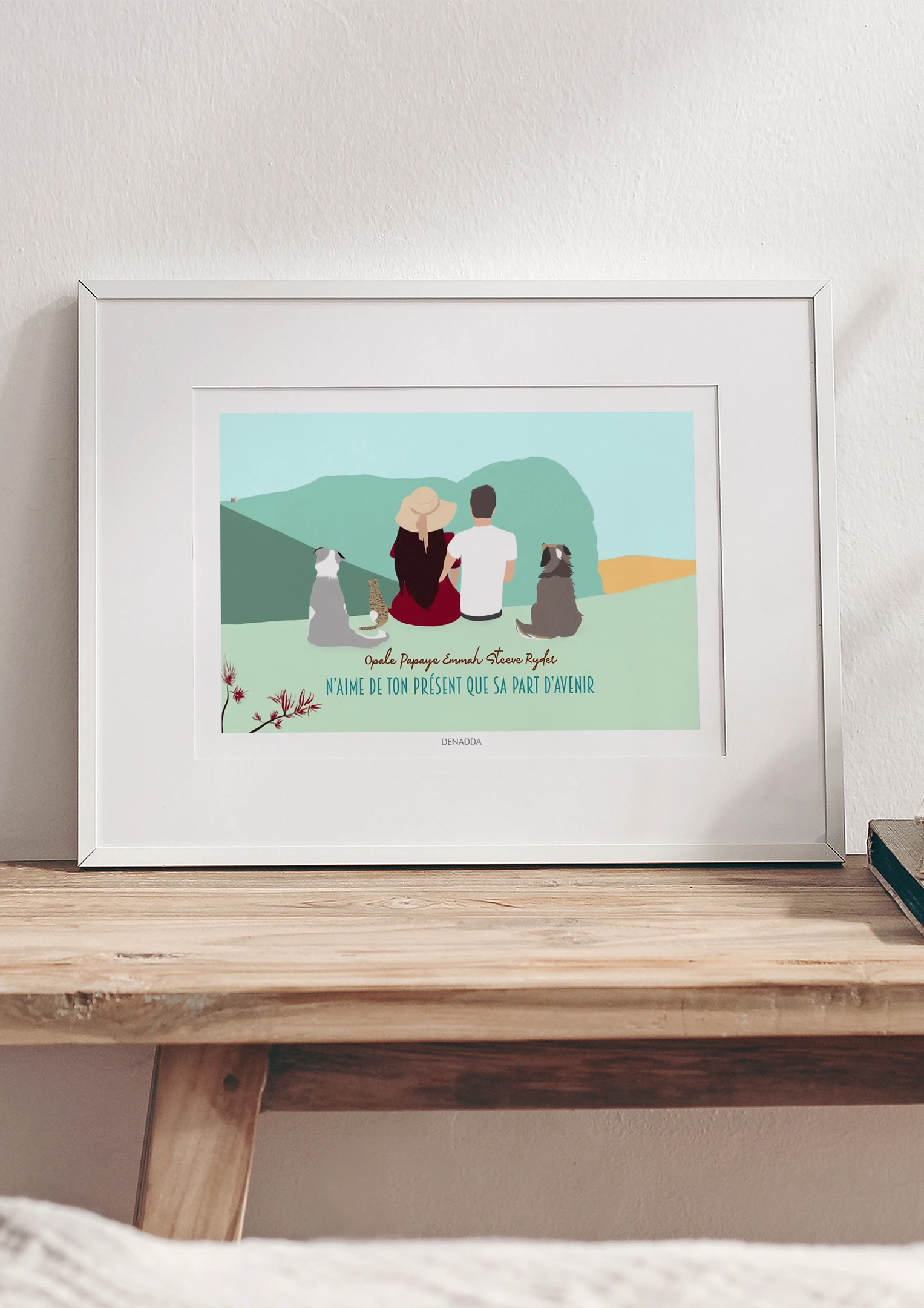 Illustration personnalisée minimaliste couple et animaux de dos