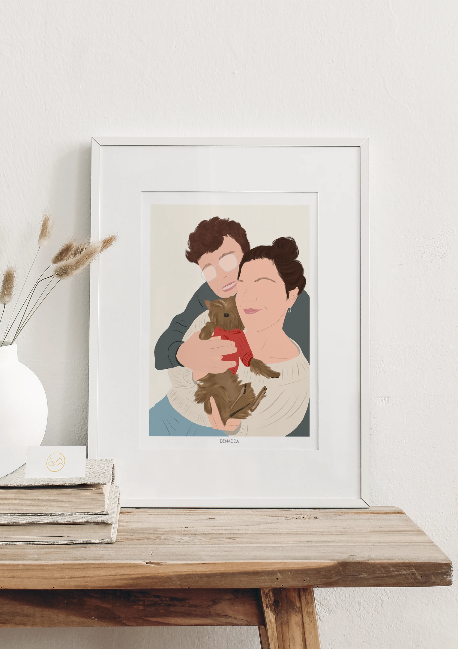 Illustration personnalisée minimaliste couple et animaux “Sans visage”
