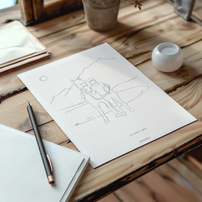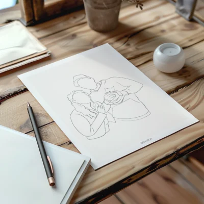 Apportez une touche de minimalisme à votre décoration intérieure, un dessin en noir et blanc réalisé à la main en un seul trait par Elma l’illustratrice de Denadda. Commandez dès maintenant votre portrait de couple minimaliste, une idée de cadeau original qui saura à coup sûr attirer tous les regards.